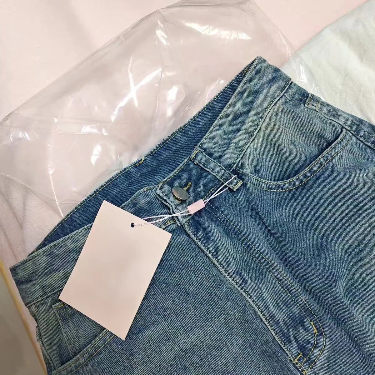 Nuovi pantaloni larghi a vita alta blu retrò americani che drappeggiano Jeans a gamba dritta da donna